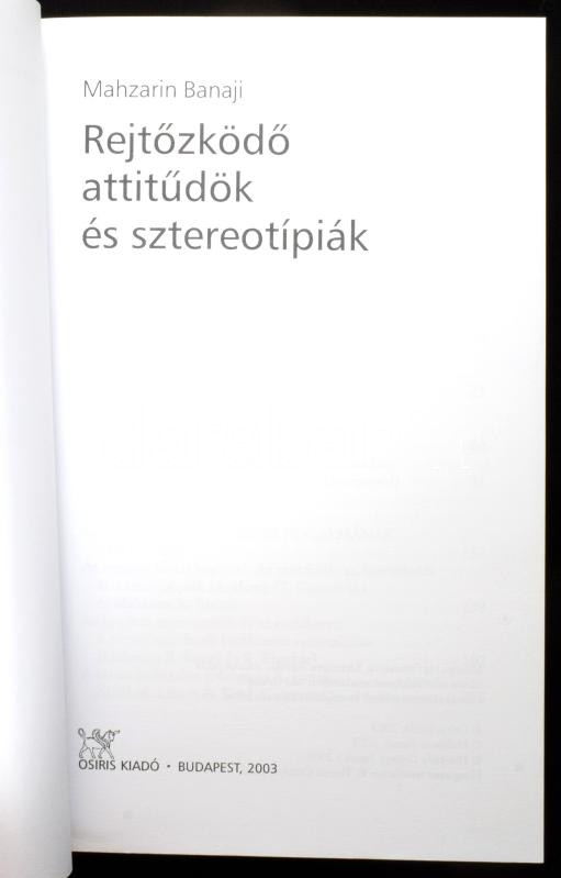 Mahzarin Banaji: Rejtőzködő attitűdök és sztereotípiák. Osiris Kiadó, ... https://www.darabanth.com/de/514-Auktion-Philatelie-Postkarten-Numismatik-Kunstwerke-Bucher-Schreibwaren-Schmuck/515.0/Bucher/Bucher-Sozialwissenschaften~624/Mahzarin-Banaji-Rejtozkodo-attitudok-es-sztereotipiak-Osiris-Kiado-2003-Kiadoi-papirk~II3460536