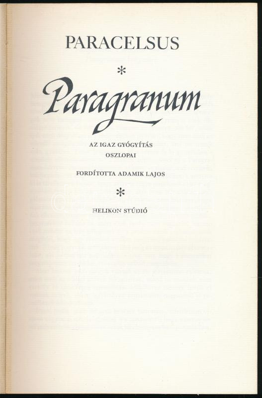 Paracelsus: Paragranum. Az igazi gyógyítás oszlopai. 1989, Helikon. Ki... https://www.darabanth.com/de/514-Auktion-Philatelie-Postkarten-Numismatik-Kunstwerke-Bucher-Schreibwaren-Schmuck/515.0/Bucher/Bucher-Sozialwissenschaften~624/Paracelsus-Paragranum-Az-igazi-gyogyitas-oszlopai-1989-Helikon-Kiadoi-papirkotes-jo-a~II3464241