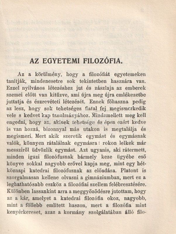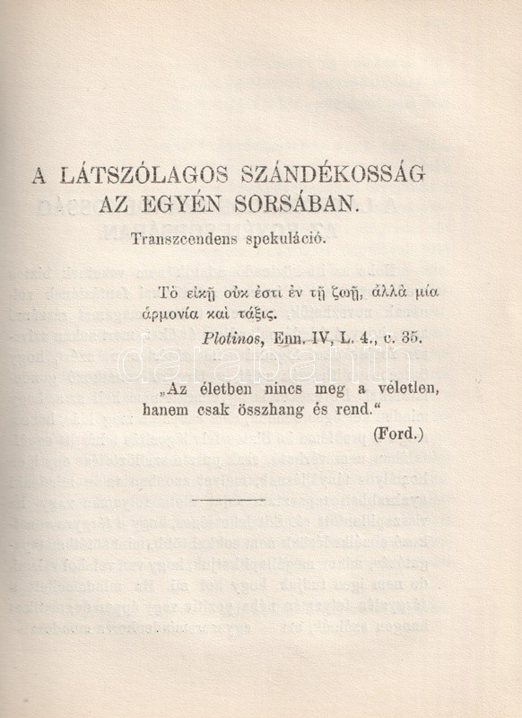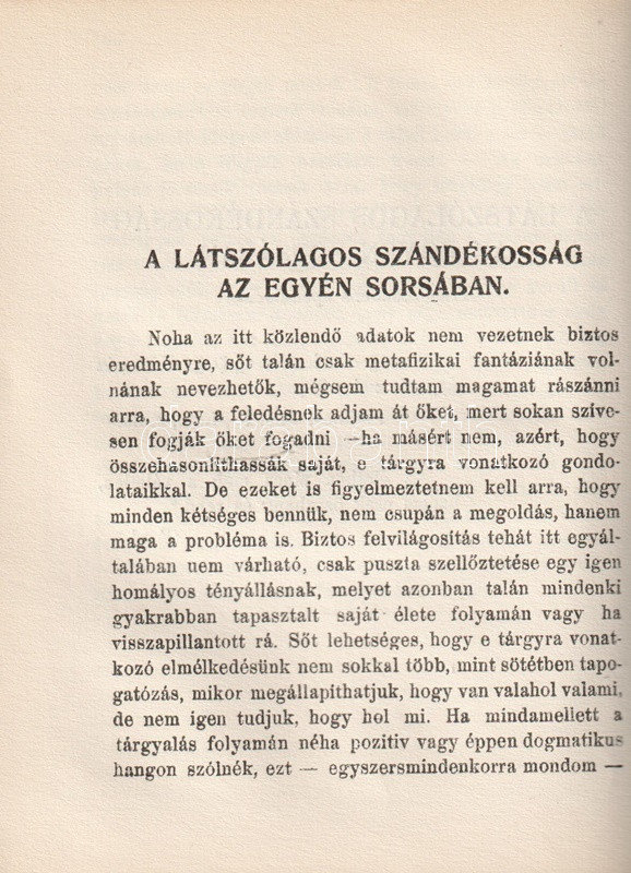 Kötetünk tartalma: Az egyetemi filozófia -- A látszólagos szándékosság az egyén sorsában -- Igaz mivoltunk elpusztíthatatlansága -- Íróskodás és stílus.
