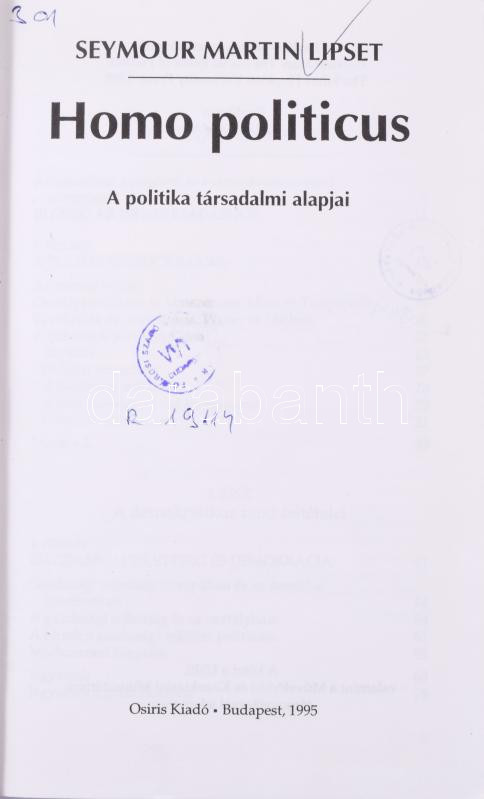 Seymour Martin Lipset: Homo politicus. Osiris Kiadó, 1995. Kiadói papí... https://www.darabanth.com/de/514-Auktion-Philatelie-Postkarten-Numismatik-Kunstwerke-Bucher-Schreibwaren-Schmuck/515.0/Bucher/Bucher-Sozialwissenschaften~624/Seymour-Martin-Lipset-Homo-politicus-Osiris-Kiado-1995-Kiadoi-papirkotes-volt-konyvtari-~II3460609