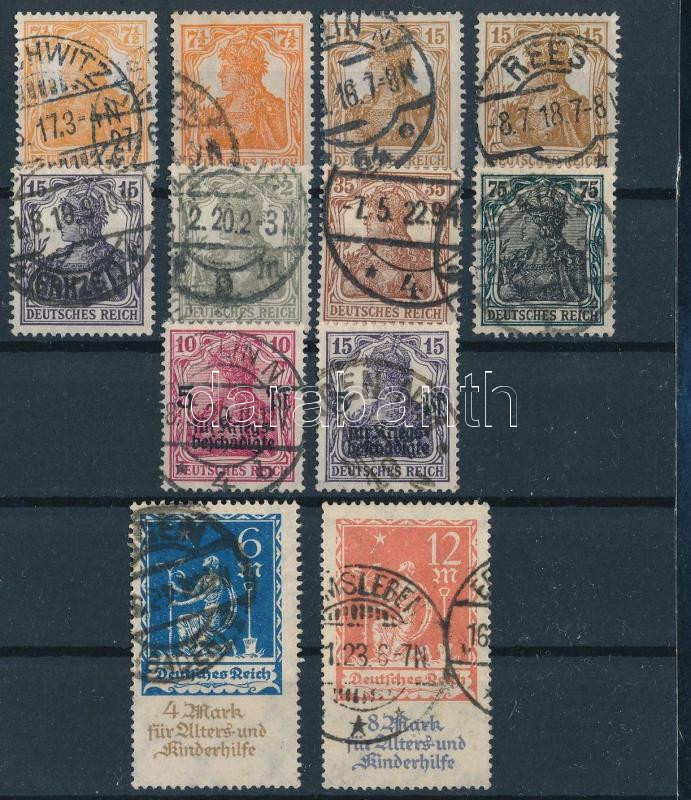 Deutsches Reich 1916-1922 Mi 99 a+b, 100 a+b, 101a, 102, 103a, 104a, 105c, 106a + 233-234 minden érték vizsgálójellel, beazonosítva (Mi EUR 122,50)