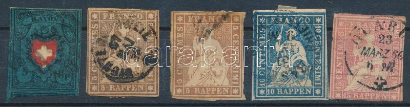 Beschreibung: Svájc 1850-1854 5 db klasszikus bélyeg, garancia nélkül (Mi EUR ~2.750.-) / 5 stamps, no guarantee