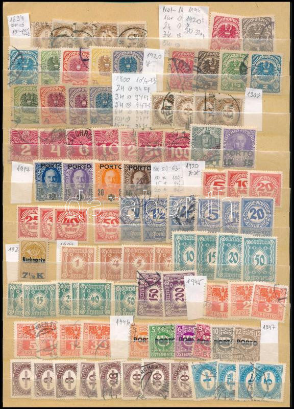 Ausztria 1894-1947 92 db Portó bélyeg, A/4 berakólapon