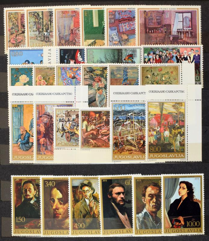 Festmény, művészet motívum, szovjet, spanyol, jugoszlávia, arab országok, Lengyelország, Monaco stb. főleg postatiszta összeállítások, bélyegek 2 db A4-es berakóban, benne jobb sorokkal