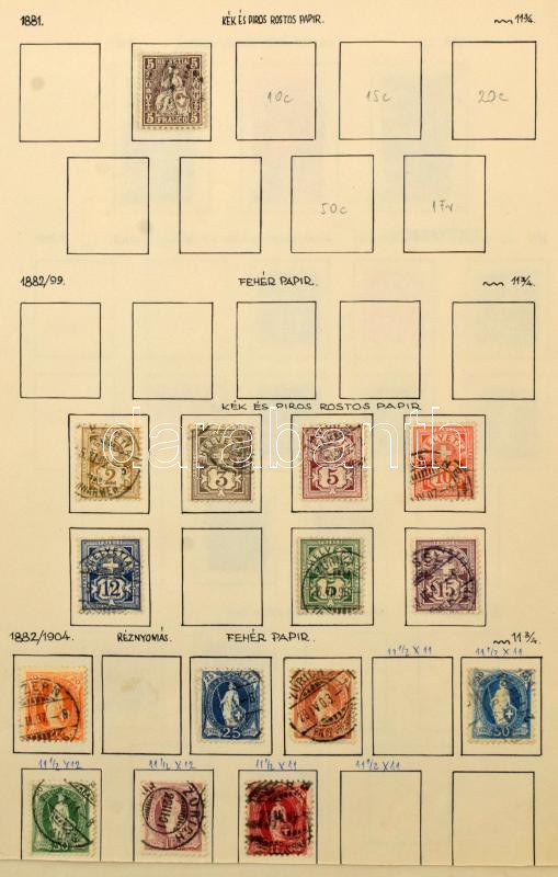 Beschreibung: Svájc gyűjtemény maradvány az 1862-1996 közötti időszakból, házi készítésű albumlapokon, egy része előrajzolt, mappában