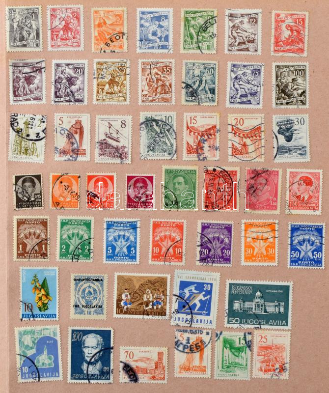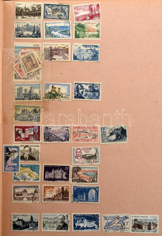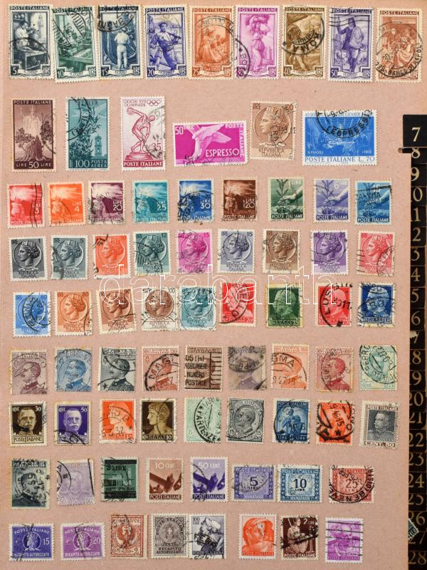 Vegyes külföldi bélyegek a világ minden tájáról egy db régi aláíró könyvben és 1 db berakóban, bennük sok száz darab bélyeg