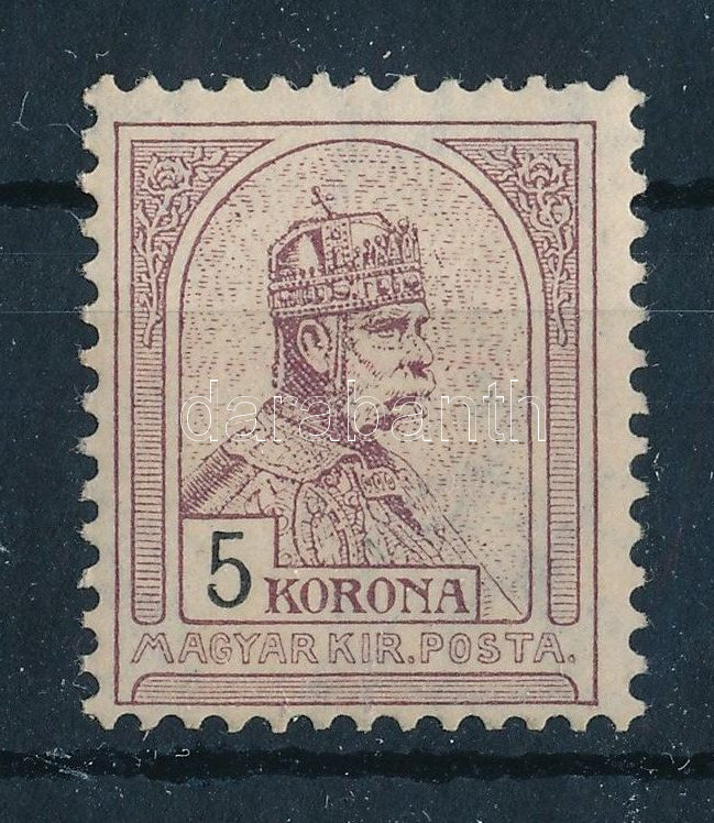 1904 Turul 5K 1. vízjelállás postatiszta bélyeg (200.000) https://www.darabanth.com/de/514-Auktion-Philatelie-Postkarten-Numismatik-Kunstwerke-Bucher-Schreibwaren-Schmuck/515.0/Erlesene-Lose-und-Sammlungen-Ungarn/Einzelne-Gebotslose-Ungarn~1/1904-Turul-5K-1-vizjelallas-postatiszta-belyeg-200000~II3478277