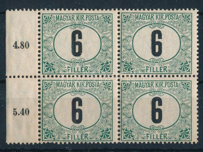 1905 Zöldportó "B" 6f postatiszta ívszéli négyestömb 1. vízj... https://www.darabanth.com/de/514-Auktion-Philatelie-Postkarten-Numismatik-Kunstwerke-Bucher-Schreibwaren-Schmuck/515.0/Erlesene-Lose-und-Sammlungen-Ungarn/Einzelne-Gebotslose-Ungarn~1/1905-Zoldporto-B-6f-postatiszta-ivszeli-negyestomb-1-vizjelallassal-24800plusplusplus~II3478519