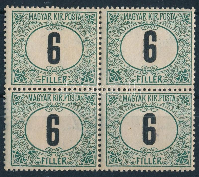 Beschreibung: 1905 Zöldportó "B" 6f postatiszta négyestömb 4. vízjelállással (32.000+++)