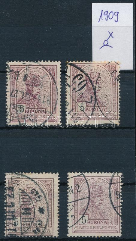 Beschreibung: 1909 4 db Turul 5K 2. vízjelállással (24.000)