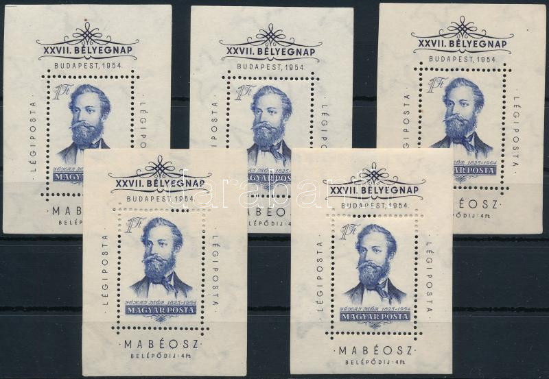 Beschreibung: 1954 5 db Bélyegnap Jókai blokk (40.000) / 5 x Mi block 24