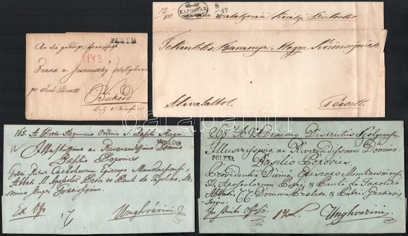Beschreibung: 1843-1847 4 db bélyeg előtti levél "POLENA", "PESTH", "KAPOSVÁR", "MUNKÁTS"