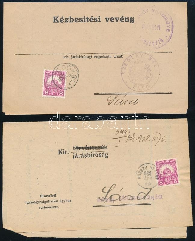 1926-1931 8 db klf egykörös bélyegzésű küldemény, ebben az időszakban a használatuk már ritka!