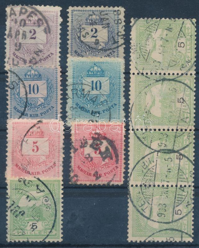 6 db Színesszámú Krajcáros bélyeg + Turul 5f + 5f 4-es csíkban