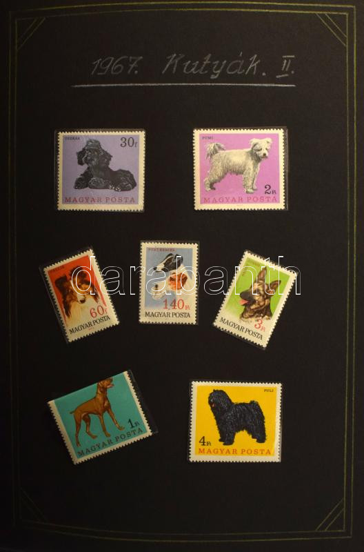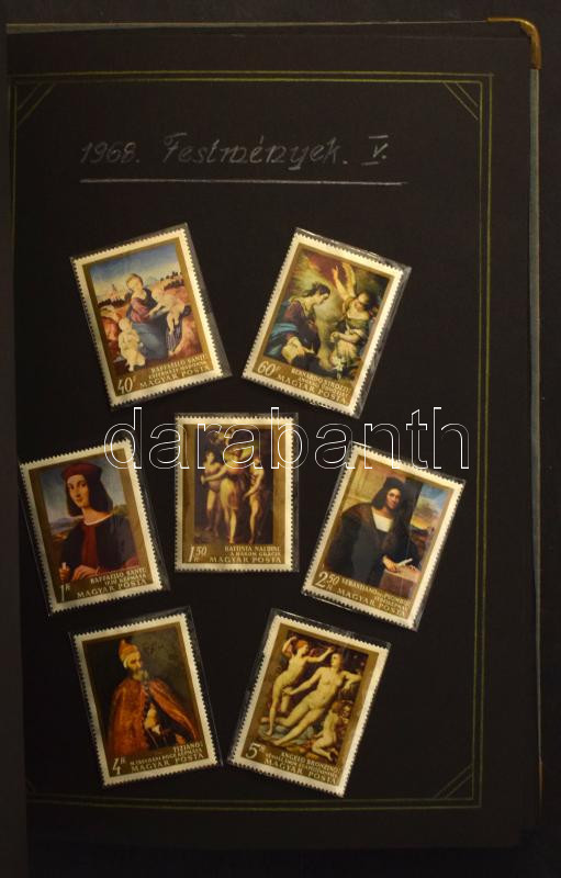 Kis érintetlen hagyaték tétel, benne magyar gyűjtemény az 1924-1948 + 1968-1972 időszakokból, házi készítésű kézzel rajzolt albumban, gyűrűs mappában tokkal. Hozzá 2 db szivar dobozban bontatlan kereskedői tasakok, a dobozban blokkok, egy része összetapadt + emléklapok és FDC-k, dobozban