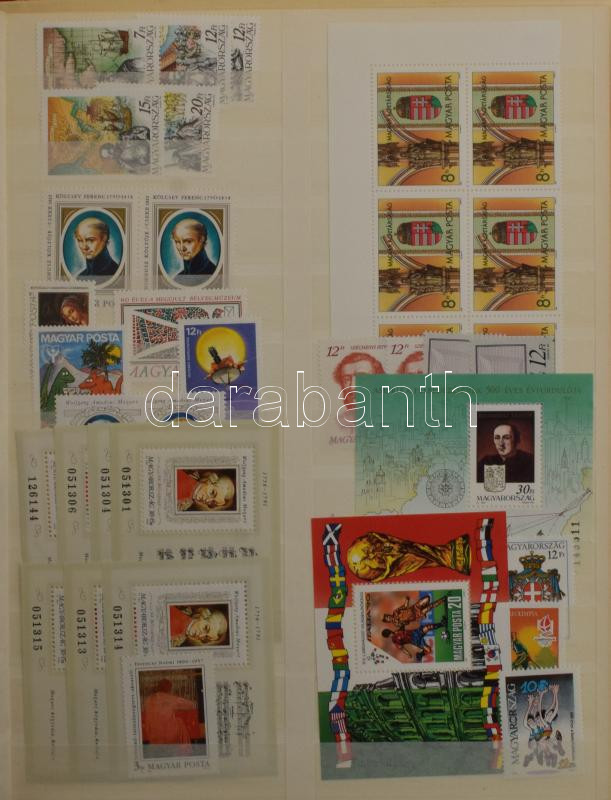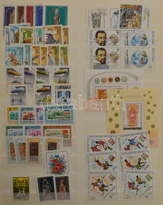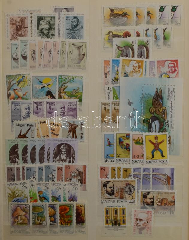 Magyar bélyegek 3 db A4 berakóban, benne sorok, összefüggések (dohos)