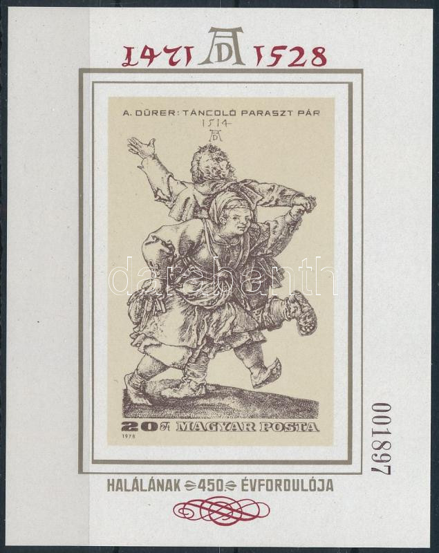 1978 Festmény - XVI. - Albrecht Dürer vágott blokk (7.000) https://www.darabanth.com/de/514-Auktion-Philatelie-Postkarten-Numismatik-Kunstwerke-Bucher-Schreibwaren-Schmuck/515.0/Erlesene-Lose-und-Sammlungen-Ungarn/Ungezahnte-Satze-Blocke-Gebotslose~2/1978-Festmeny-XVI-Albrecht-Durer-vagott-blokk-7000~II3475912