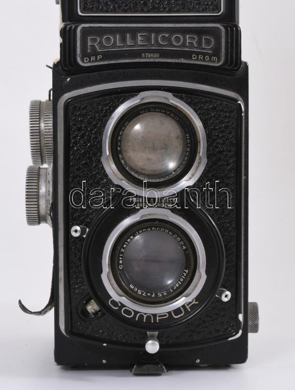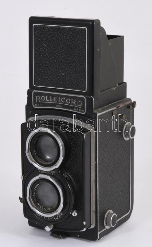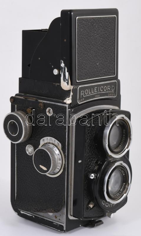 ca 1932 Rolleicord II IIb /Model 3 fényképezőgép Zeiss Triotar 4,5/7,5 cm és Heidosmat Anastigmat 4/7,5 cm objektívekkel, kissé elvált borítással, de egyébként jó állapotban.