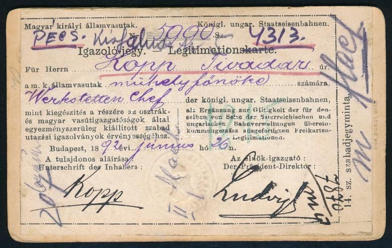1892 Bp., Kopp Tivadar a M. Kir. Államvasutak műhelyfőnöke, igazolvány... https://www.darabanth.com/de/514-Auktion-Philatelie-Postkarten-Numismatik-Kunstwerke-Bucher-Schreibwaren-Schmuck/515.0/Fotografie/Foto~72/1892-Bp-Kopp-Tivadar-a-M-Kir-Allamvasutak-muhelyfonoke-igazolvanykent-hasznalt-kemenyhC3~II3479717