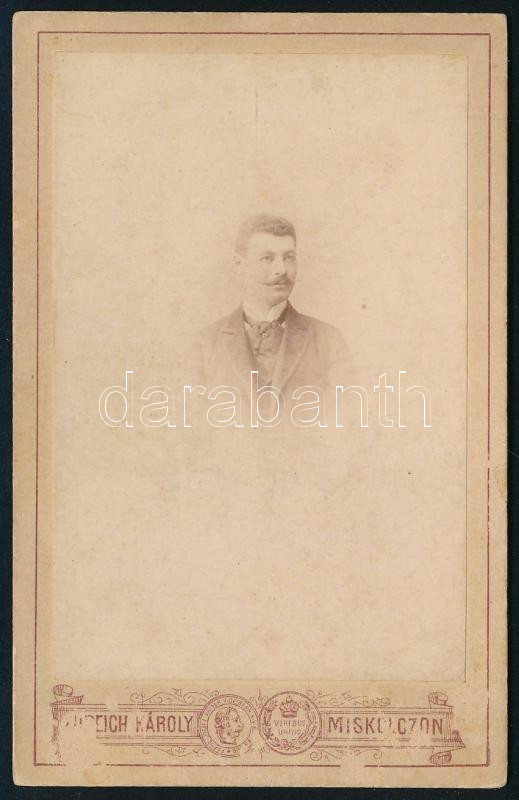 Beschreibung: cca 1895 Férfiportré, keményhátú fotó Zureich Károly miskolci műterméből, 10,5×6,5 cm