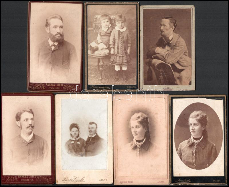 cca 1900, 7 darab vizitkártya aradi műtermekből, 11x7 cm https://www.darabanth.com/de/514-Auktion-Philatelie-Postkarten-Numismatik-Kunstwerke-Bucher-Schreibwaren-Schmuck/515.0/Fotografie/Foto~72/cca-1900-7-darab-vizitkartya-aradi-mutermekbol-11x7-cm~II3482568
