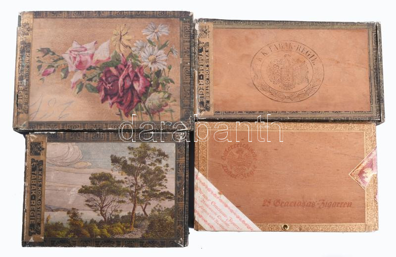 8 darab antik osztrák szivaros fadoboz, zömmel Tabak-Regie, h: 26 cm https://www.darabanth.com/de/514-Auktion-Philatelie-Postkarten-Numismatik-Kunstwerke-Bucher-Schreibwaren-Schmuck/515.0/Fotografie/Werbungen~73/8-darab-antik-osztrak-szivaros-fadoboz-zommel-Tabak-Regie-h-26-cm~II3478952