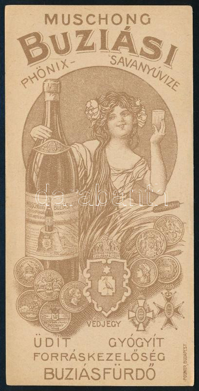 Beschreibung: cca 1910 A buziási (Erdély) Muschong Phönix savanyúvíz szecessziós számolócédulája, szép állapotban