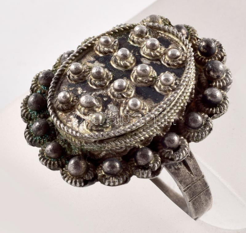 Ezüst (Ag) gyűrű filigrán díszítéssel, jelzés nélkül, m: 56, nettó 6,9g
