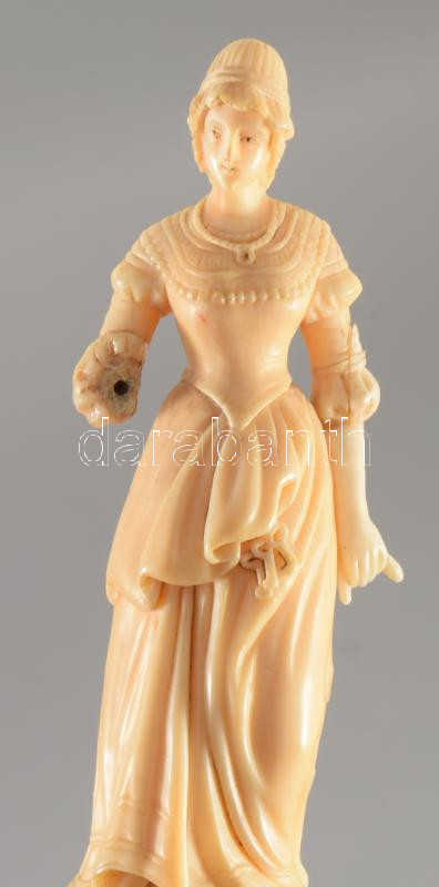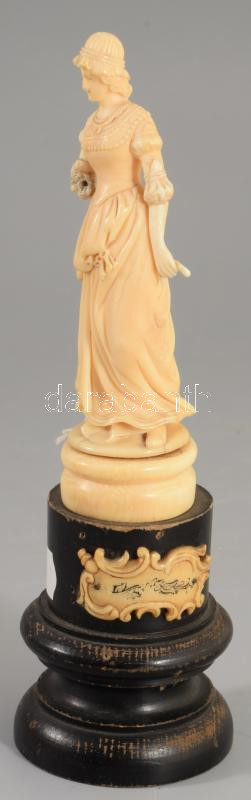 Beschreibung: cca 1800-1820 Elegáns hölgy - faragott csont szobor, fa talapzaton, keze sérült, m: 17,5 cm