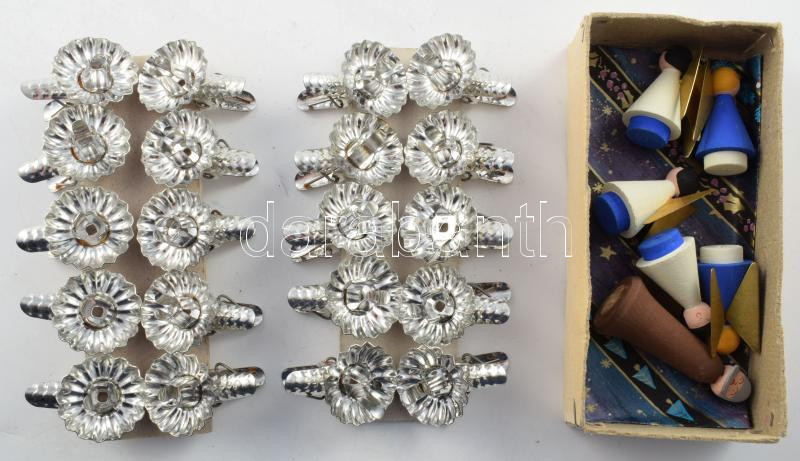 Beschreibung: 20 darab karácsonyfa gyertyatartó + 6 darab fa karácsonyfa dísz
