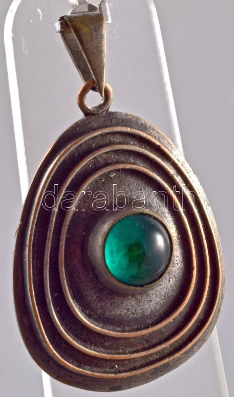 Beschreibung: Percz János (1920-2000): Zöld szemes medál, jelzés nélkül, 3,5x3 cm