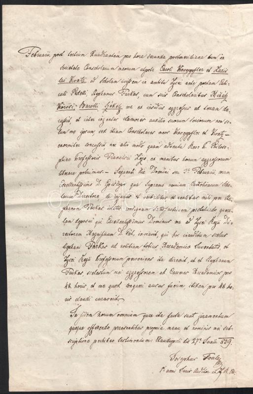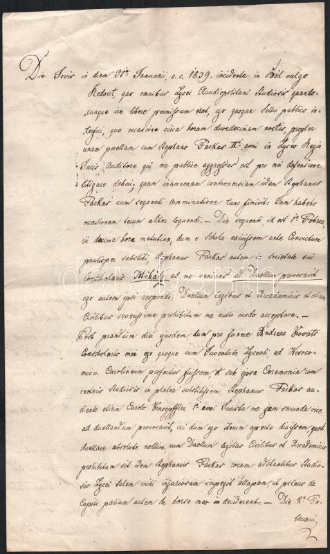 Beschreibung: 1839 Kolozsvár, párbaj latin nyelvű leírása