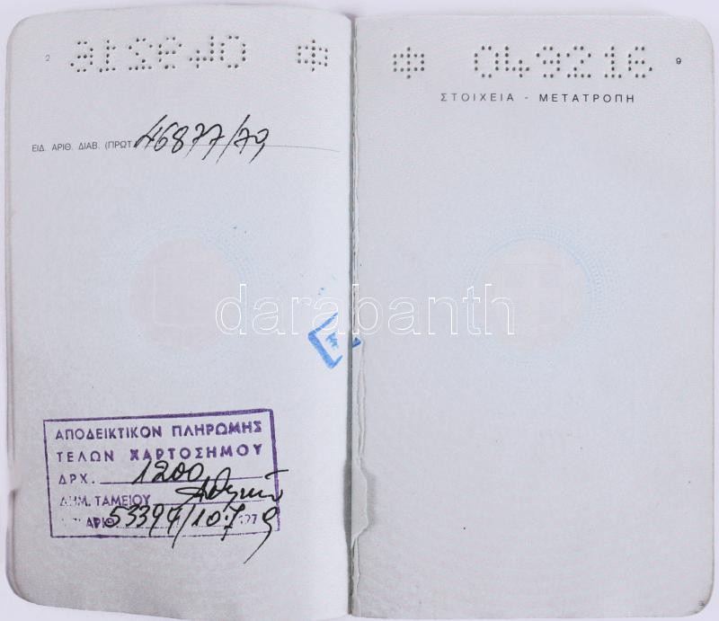 3 db különféle görög útlevél, Unió előtti (2 lap hiány), Eu Közösség, ... https://www.darabanth.com/de/514-Auktion-Philatelie-Postkarten-Numismatik-Kunstwerke-Bucher-Schreibwaren-Schmuck/515.0/Kunst-Dokumente-andere-Sammelgebiete/Dokument~68/3-db-kulonfele-gorog-utlevel-Unio-elotti-2-lap-hiany-Eu-Kozosseg-Europai-Unio~II3463776
