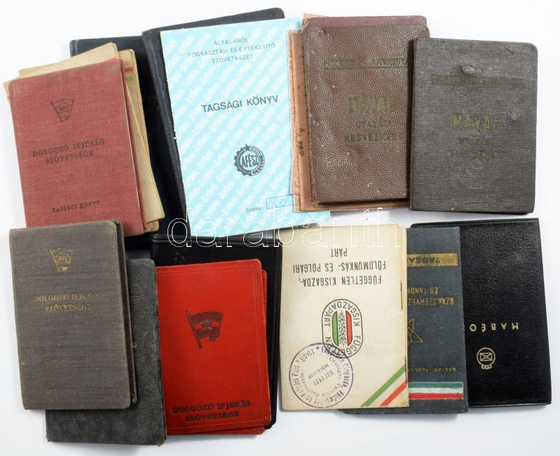Beschreibung: Vegyes okmány tétel, összesen 20 db, közte FKgP tagsági igazolvány, MABÉOSZ, DISZ tagsági könyvek, stb.
