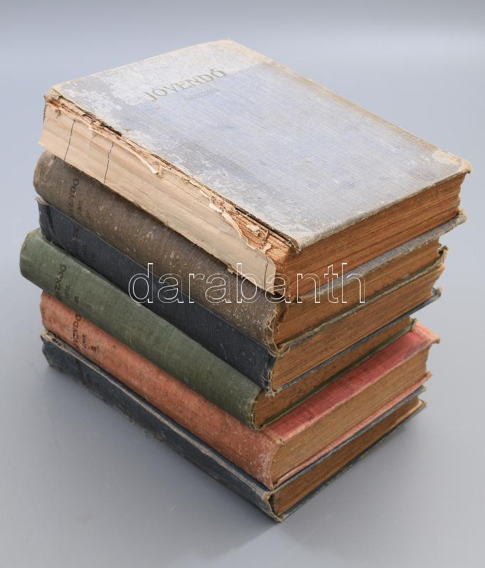 Beschreibung: 1903 Jövendő folyóirat áprilisi, májusi, októberi, márciusi, júniusi, szeptemberi számai hónaponként egybekötve, 6 kötetben, sérült egészvászon kötésben,