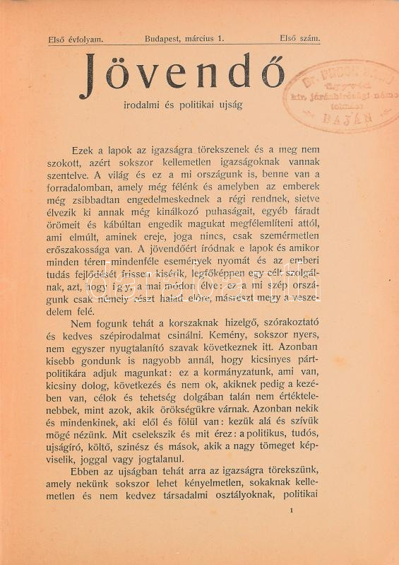 1903 Jövendő folyóirat áprilisi, májusi, októberi, márciusi, júniusi, ... https://www.darabanth.com/de/514-Auktion-Philatelie-Postkarten-Numismatik-Kunstwerke-Bucher-Schreibwaren-Schmuck/515.0/Kunst-Dokumente-andere-Sammelgebiete/Drucksachen~83/1903-Jovendo-folyoirat-aprilisi-majusi-oktoberi-marciusi-juniusi-szeptemberi-szamai-hC3~II3422324