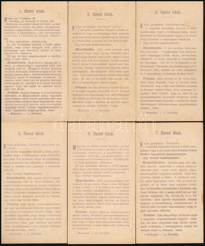 1911 A Szent Olvasó tizenőt titka, litho képek sérült papír tokban, 3-... https://www.darabanth.com/de/514-Auktion-Philatelie-Postkarten-Numismatik-Kunstwerke-Bucher-Schreibwaren-Schmuck/515.0/Kunst-Dokumente-andere-Sammelgebiete/Drucksachen~83/1911-A-Szent-Olvaso-tizenot-titka-litho-kepek-serult-papir-tokban-3-as-titok-hianyzik-12-~II3479865