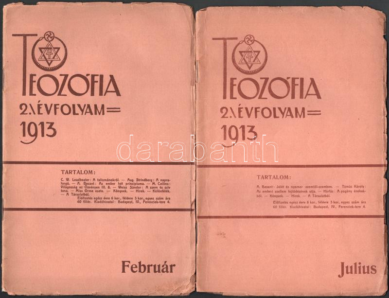 1912-1913 Teozófia, a Magyar Teozófiai Társulat lapja 3 db száma: I. é... https://www.darabanth.com/de/514-Auktion-Philatelie-Postkarten-Numismatik-Kunstwerke-Bucher-Schreibwaren-Schmuck/515.0/Kunst-Dokumente-andere-Sammelgebiete/Drucksachen~83/1912-1913-Teozofia-a-Magyar-Teozofiai-Tarsulat-lapja-3-db-szama-I-evf-10-sz-II-evf-2~II3481750