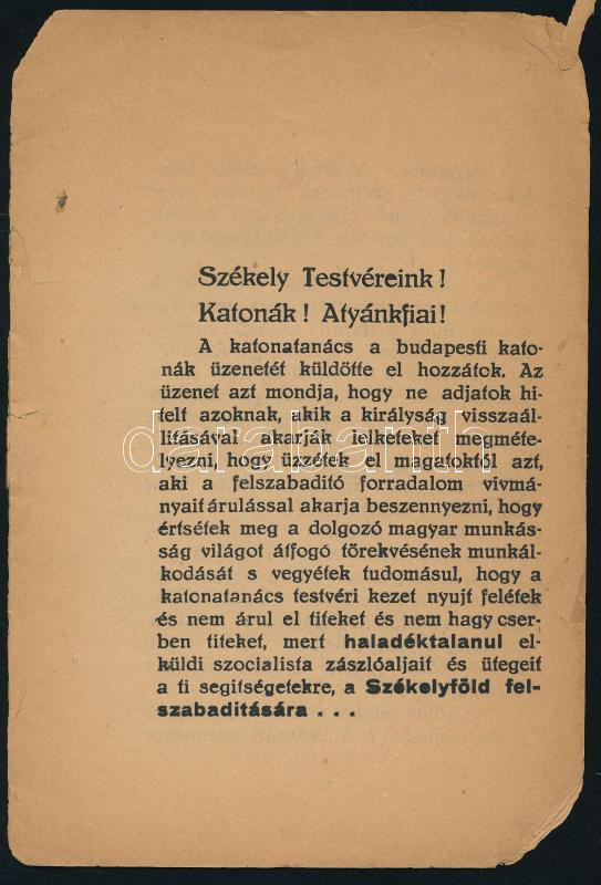 1919 A Székely Nemzeti Tanács körlevele https://www.darabanth.com/de/514-Auktion-Philatelie-Postkarten-Numismatik-Kunstwerke-Bucher-Schreibwaren-Schmuck/515.0/Kunst-Dokumente-andere-Sammelgebiete/Drucksachen~83/1919-A-Szekely-Nemzeti-Tanacs-korlevele~II3480718