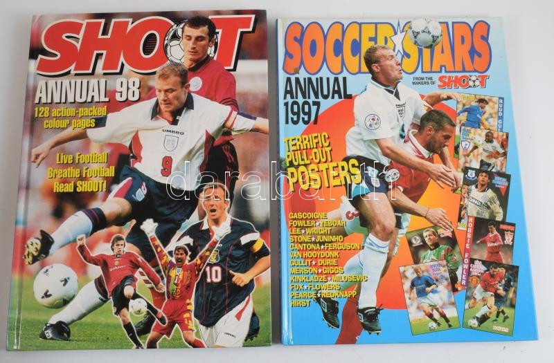1997-1998 Soccer Stars és Shot Annual 98, jó állapotban https://www.darabanth.com/de/514-Auktion-Philatelie-Postkarten-Numismatik-Kunstwerke-Bucher-Schreibwaren-Schmuck/515.0/Kunst-Dokumente-andere-Sammelgebiete/Drucksachen~83/1997-1998-Soccer-Stars-es-Shot-Annual-98-jo-allapotban~II3483338