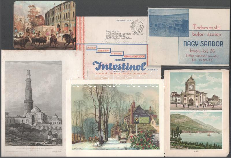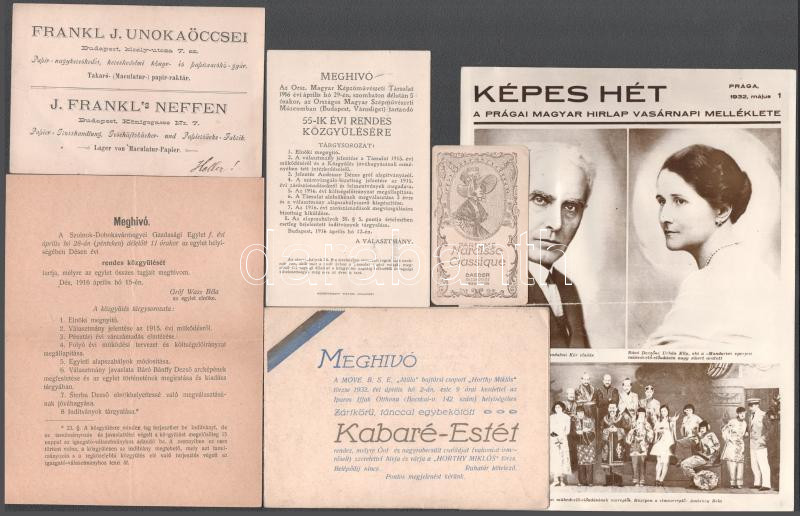 Beschreibung: Vegyes nyomtatványok és fotók: litográfia, meghívók, régi reklám nyomtatványok