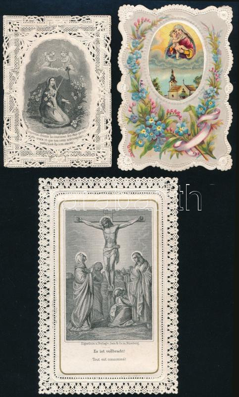 Beschreibung: ca 1890-1920 3 db csipke litho szentkép