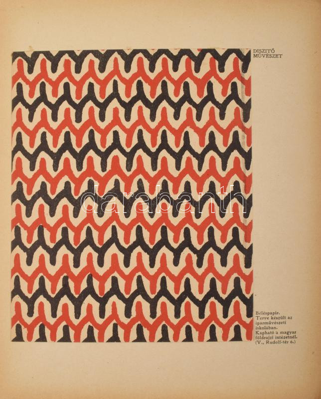 cca 1900-1930 A Díszítőművészet mellékletei: 4 béléspapír terv, varró-készlet ?Winkler Margit terv, leányszoba, ebédlő terv, Pataky Piroska batik-munka, Juhász Árpád alakos hímzés, Damkó József mézeskalács bábu minták, összesen 10 db