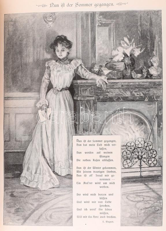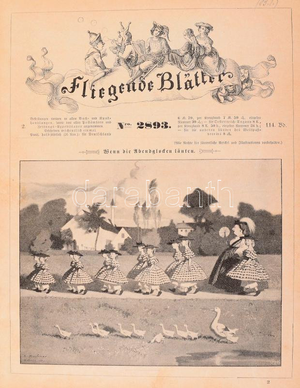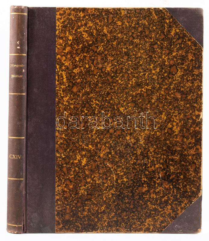 cca 1900 Fliegende Blätter Band CXIV. Nr. 2893-2916. München, é.n., Braun & Schneider, (13)-300 p. Gazdagon illusztrált, német nyelvű humoros hetilap egybefűzött számai. Korabeli félvászon-kötésben, kissé sérült gerinccel, helyenként kissé foltos lapokkal.