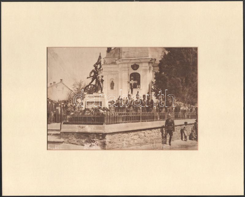 Beschreibung: cca 1931 Hajmáskér, Hősök szobra (I. világháborús emlékmű) avatása, nyomat paszpartuban, kissé sérült, látható: 15x21,5 cm