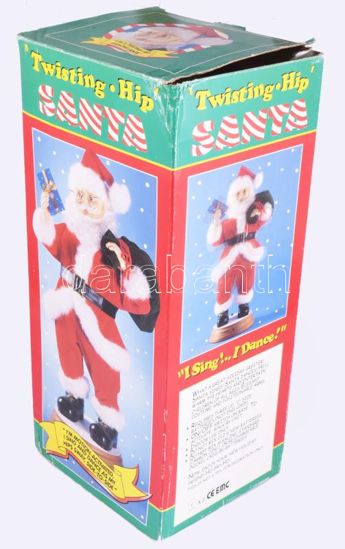 Beschreibung: Elemmel működő nagyméretű zenélő mikulás, elemtartója tisztítandó, dobozában, m: 45 cm,