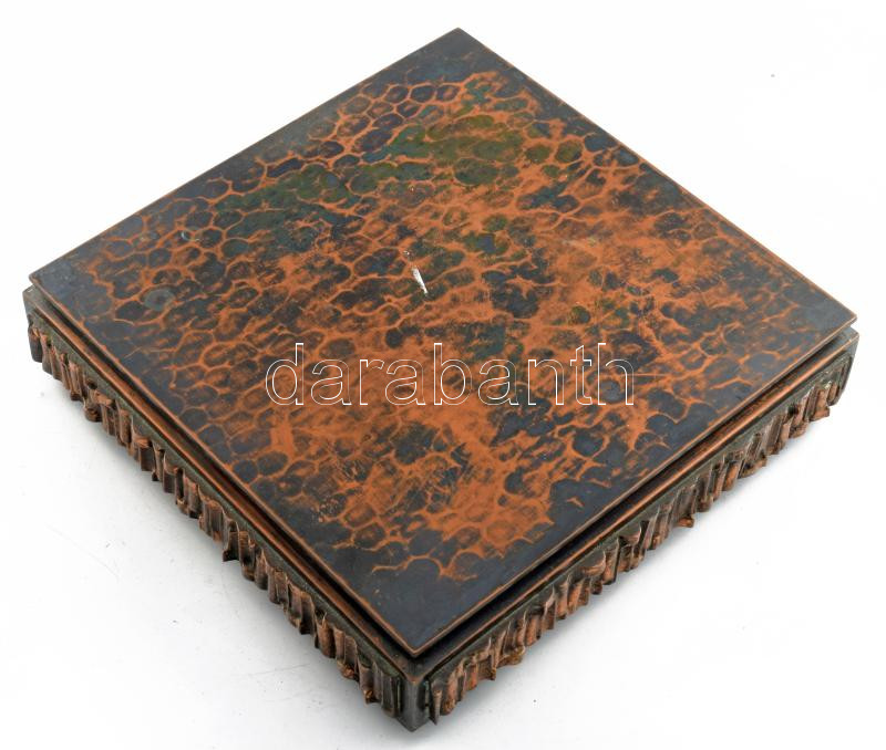 Beschreibung: Iparművész díszdoboz, fa betéttel, 18x18 cm