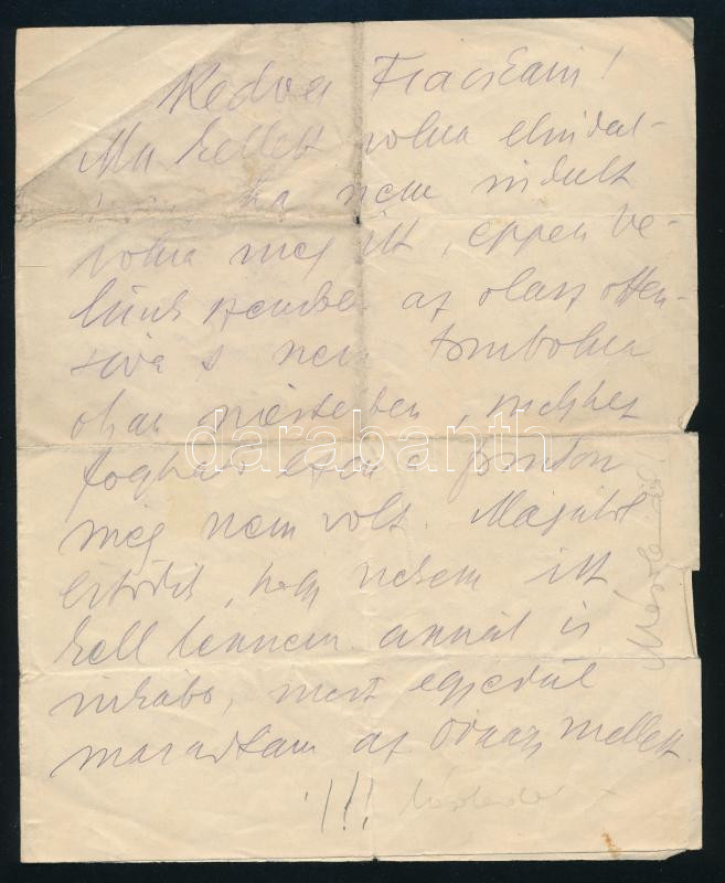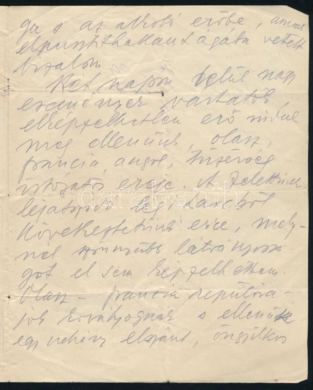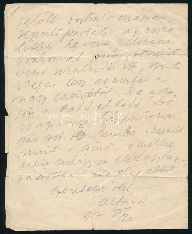 1917 Hajós Alfréd (1878-1955) építész, az első magyar olimpiai bajnok (úszó) autográf levele feleségének az olasz frontról. A négy oldalas autográf levélben a háború borzalmairól esik szó, arról, hogy az osztrák-magyar csapatok, különösen a légierő nagy túlerővel szembesül, és biztatja feleségét, hogy írjon gyakran, mert az erőt ad számára.