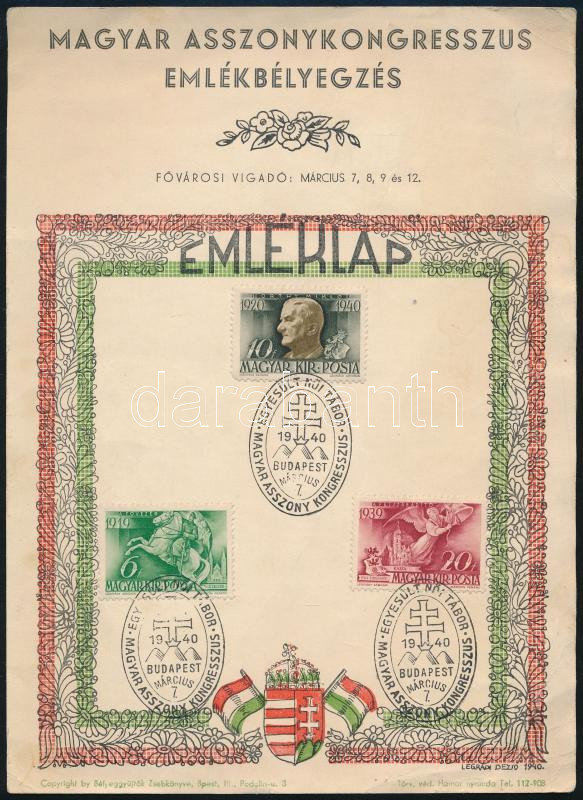 1940 Magyar Asszonykongresszus emléklap, bélyegekkel és bélyegzésekkel... https://www.darabanth.com/de/514-Auktion-Philatelie-Postkarten-Numismatik-Kunstwerke-Bucher-Schreibwaren-Schmuck/515.0/Kunst-Dokumente-andere-Sammelgebiete/Historische-Dokumenten-Handschriften~69/1940-Magyar-Asszonykongresszus-emleklap-belyegekkel-es-belyegzesekkel~II3476846