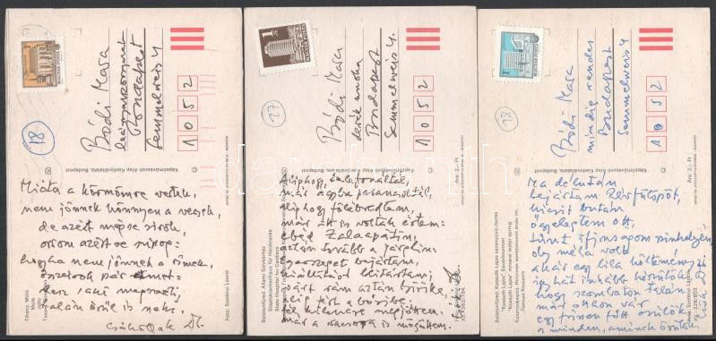 1982 januárja, Keresztury Dezső (1904-1996) költő, korábbi korábbi vallás- és közoktatásügyi miniszter autográf, szellemes verses sorai Bódi Marának, 3 db balatonfüredi és tihanyi képeslapon, Keresztury Dezső autográf aláírásával. "Mióta a körmömre vertek, nem jönnek könnyen a versek (...)"